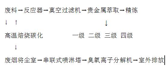 在金銀鈀鉑的應用現實中,會產生大量的廢料和舊制品,由于廢料性質,種類和形狀千差萬別,對于含金廢料的處理,需要較高專業的工藝和設備進行針對性提取,只有這樣才能獲得較好的回收率和環保排放達標的經濟技術指標,一般的含有貴金屬的廢料處理工藝流程圖如下:
